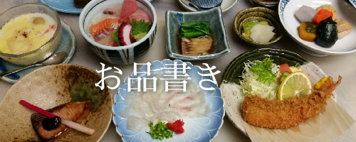 先付け、お造り、焼き物 小鉢、温物、揚げ物、お食事